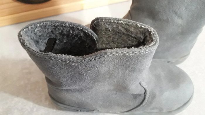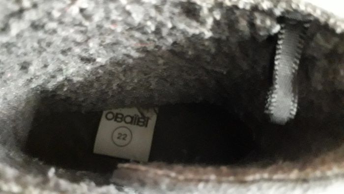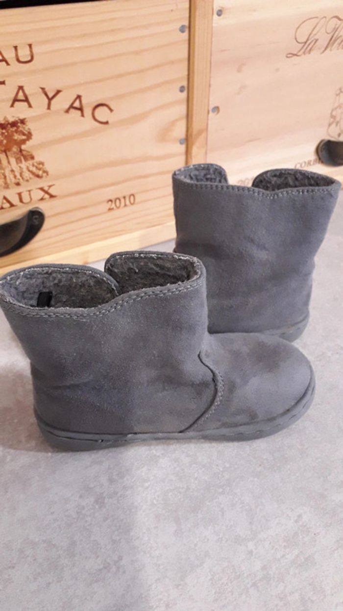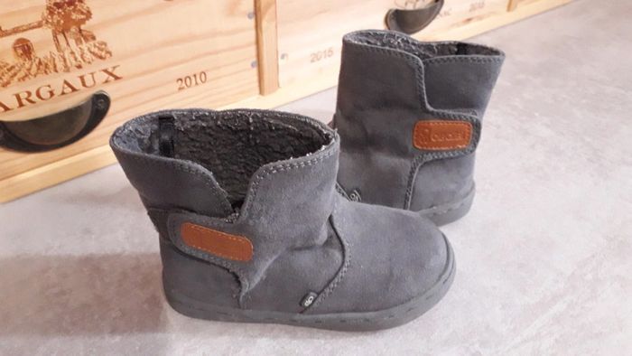 Bottines cuir suédé gris fourrées Obaïbi Portées, bon état