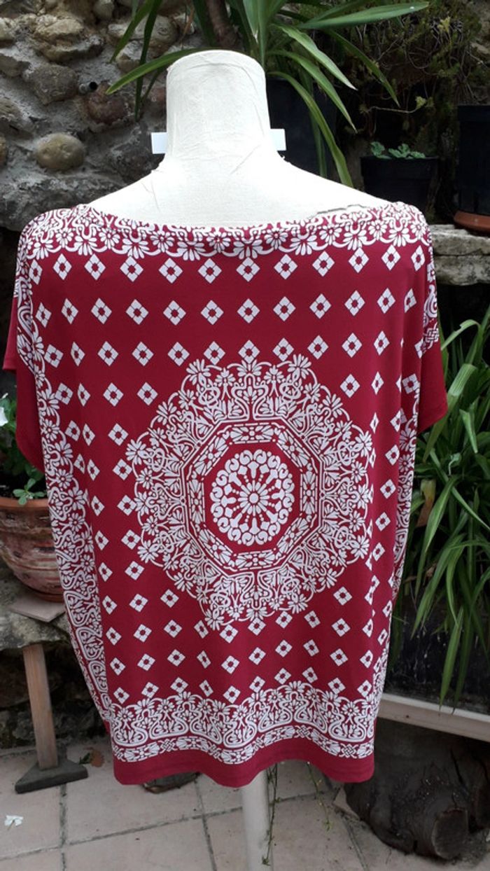 Blouse imprimé blanc sur fond fuchsia foncé manches courtes - photo numéro 3