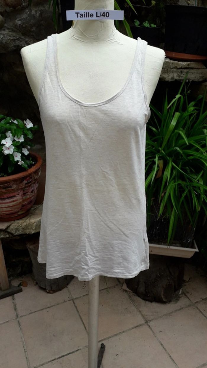 Tee-shirt débardeur chiné beige - photo numéro 2