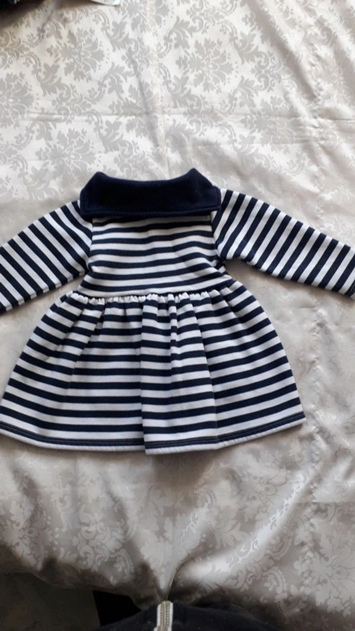 Robe rayée marine et blanc et son béret Taille 12 mois - photo numéro 2
