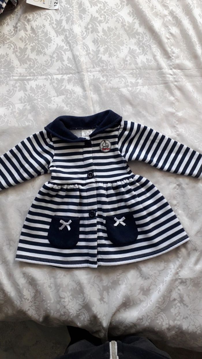 Robe rayée marine et blanc et son béret Taille 12 mois - photo numéro 1