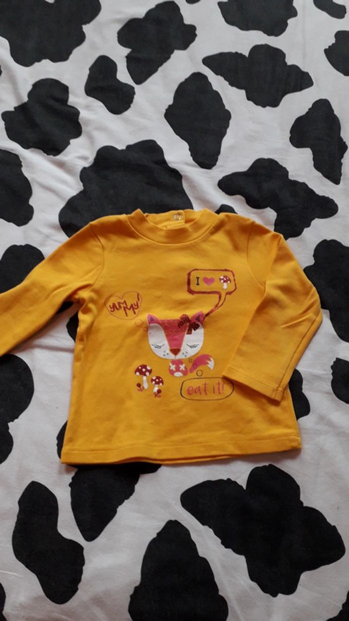 Lot de 2 tee-shirt manches longues col haut 12 mois, 74 cm le blanc porté 1 fois Le jaune jamais porté 3 boutons au dos Coton