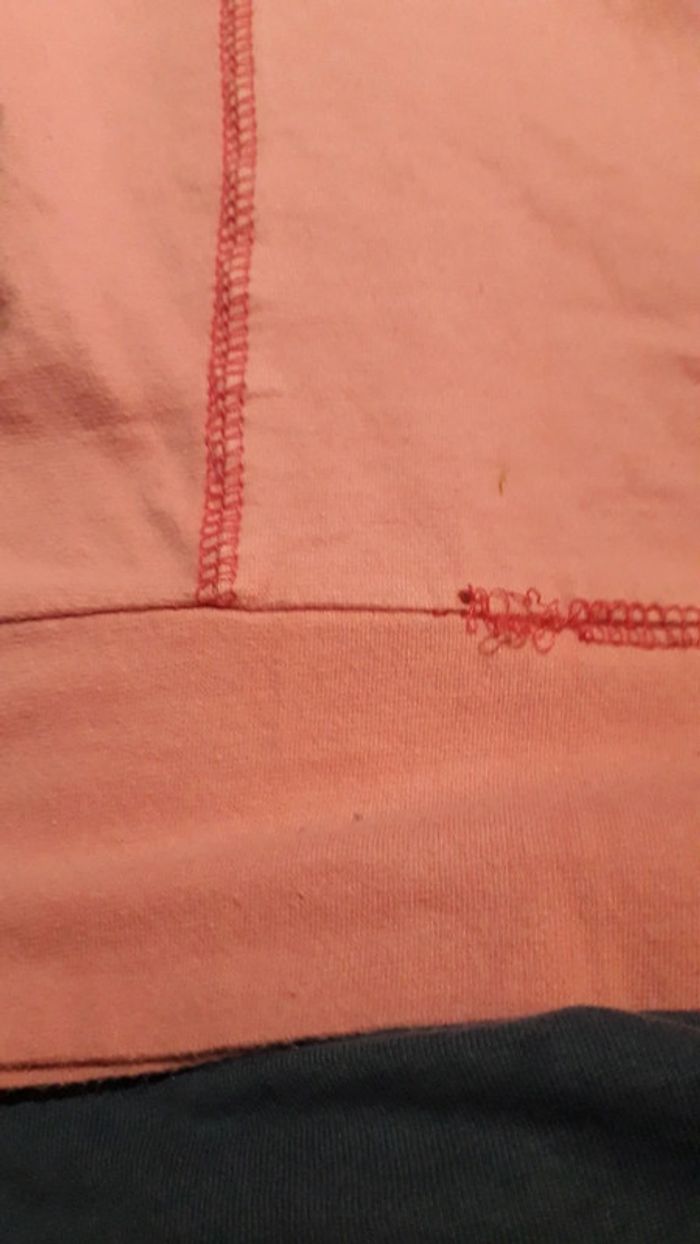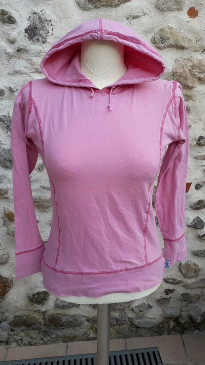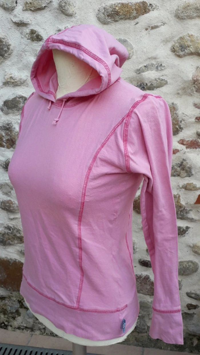Sweat à capuche, coton rose Manque 11,5 cm de surpiqûre sur le bas (dernière photo)