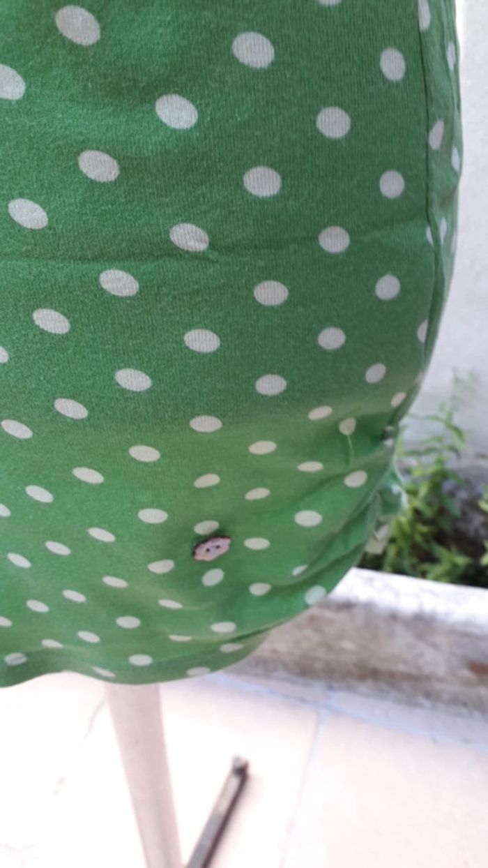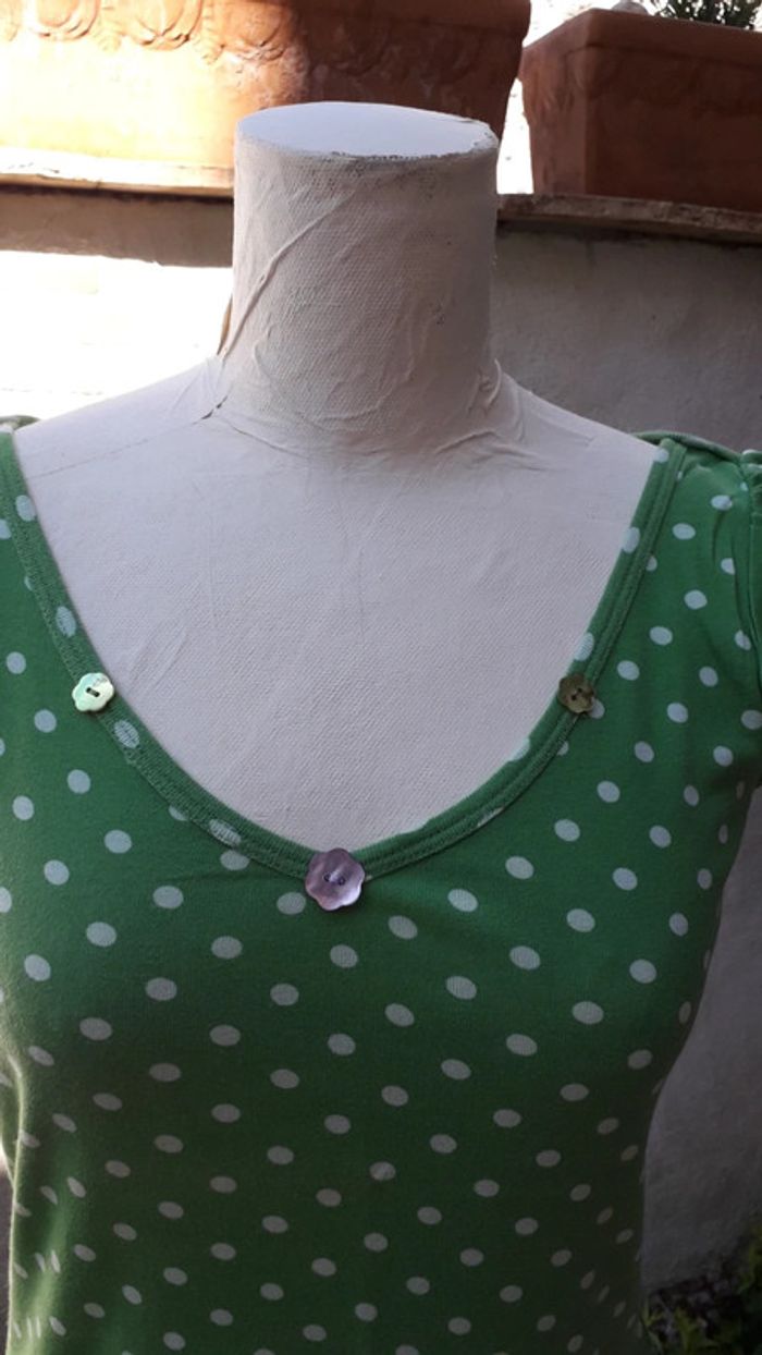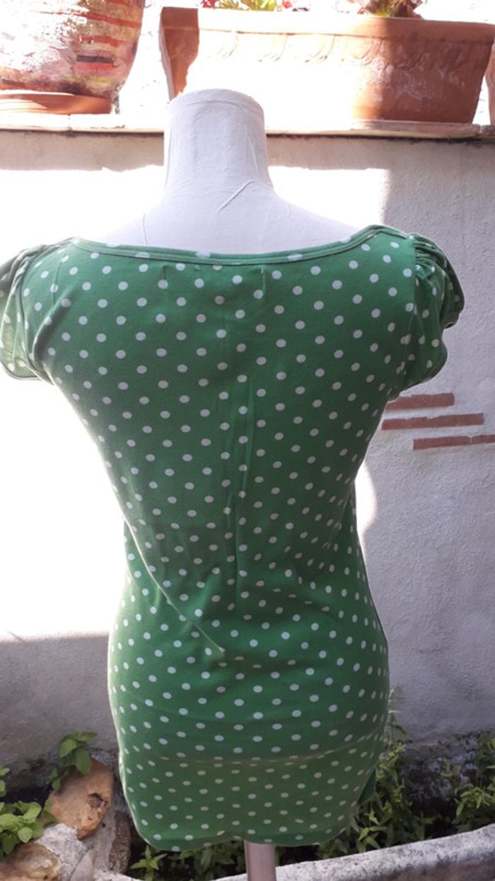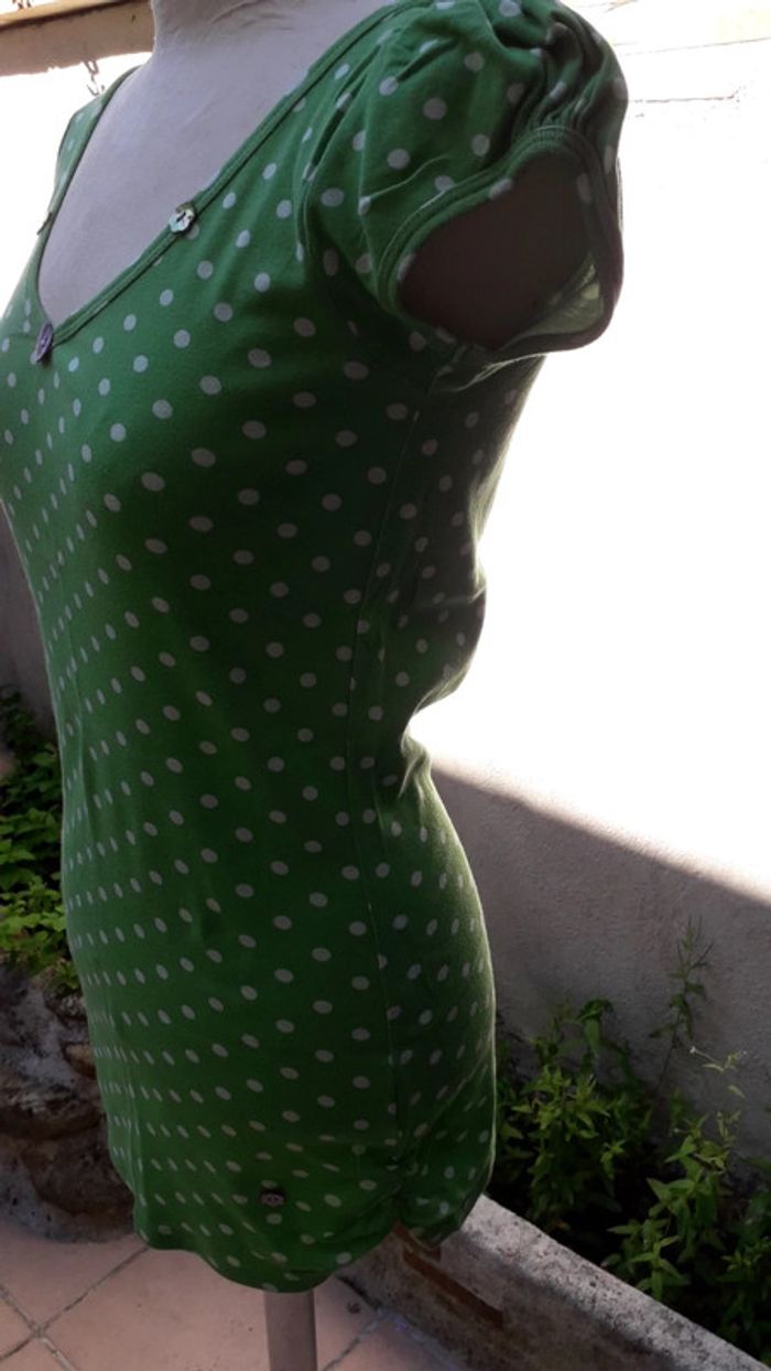 Tee-shirt en coton vert et pois blancs Longueur du haut au bas 68 cm