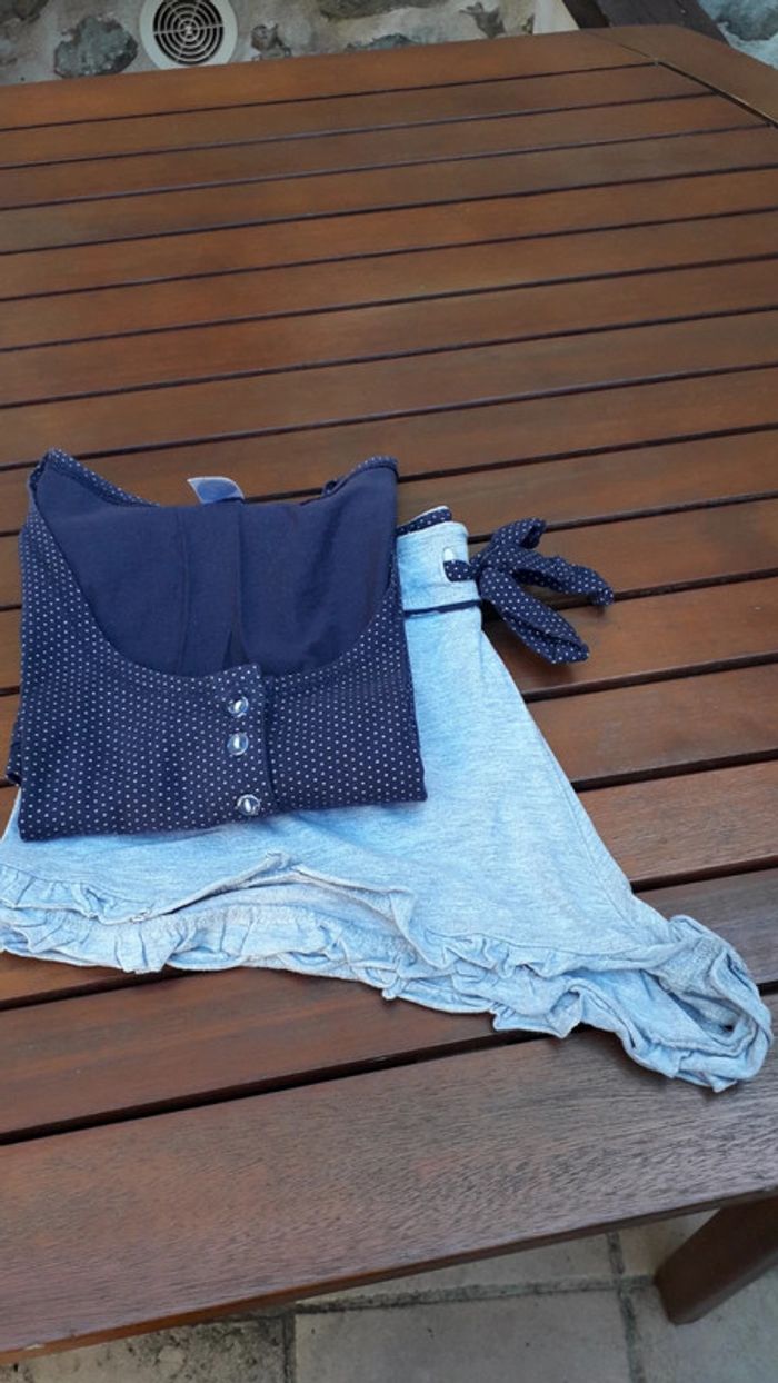 Pyjama short gris et débardeur marine pois blanc - photo numéro 2