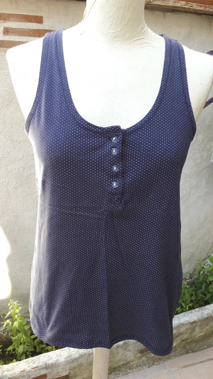 Pyjama short gris et débardeur marine pois blanc - photo numéro 4