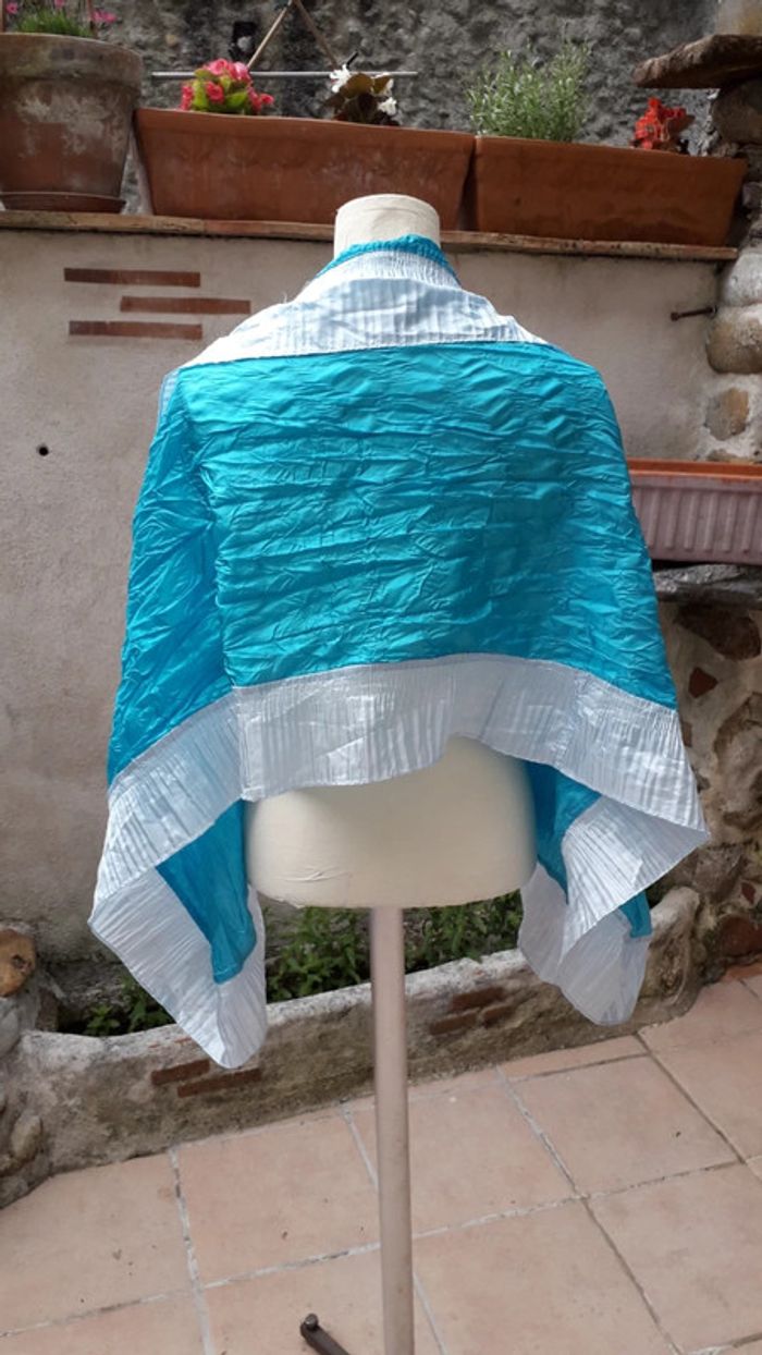 Foulard effet fripé turquoise bordé d'effet plissé - photo numéro 3