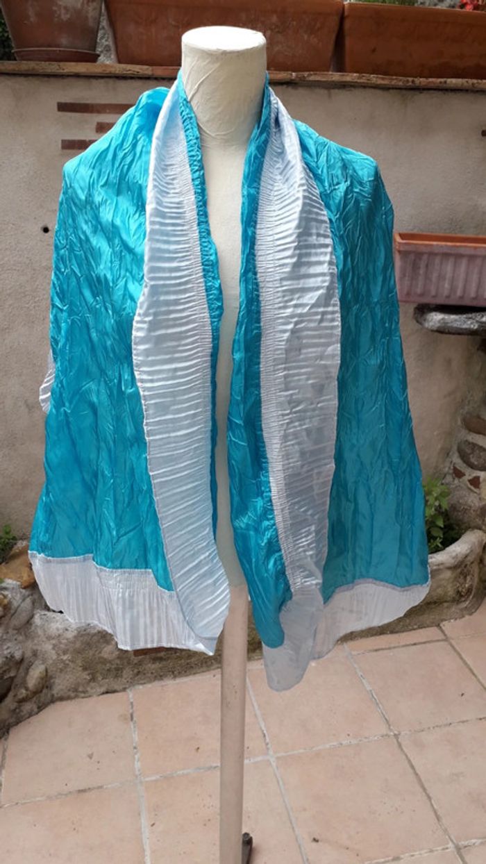 Foulard effet fripé turquoise bordé d'effet plissé - photo numéro 1