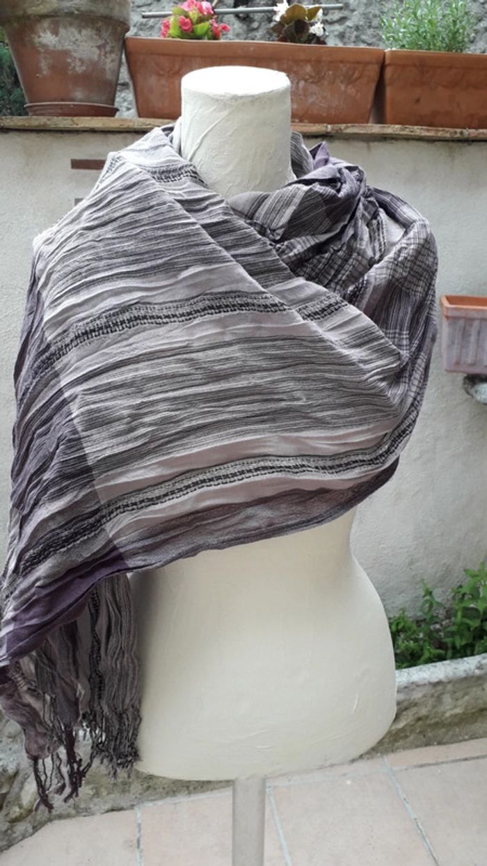 Foulard rectangulaire en coton violet et gris Longueur 178 cm - Hauteur 63 cm