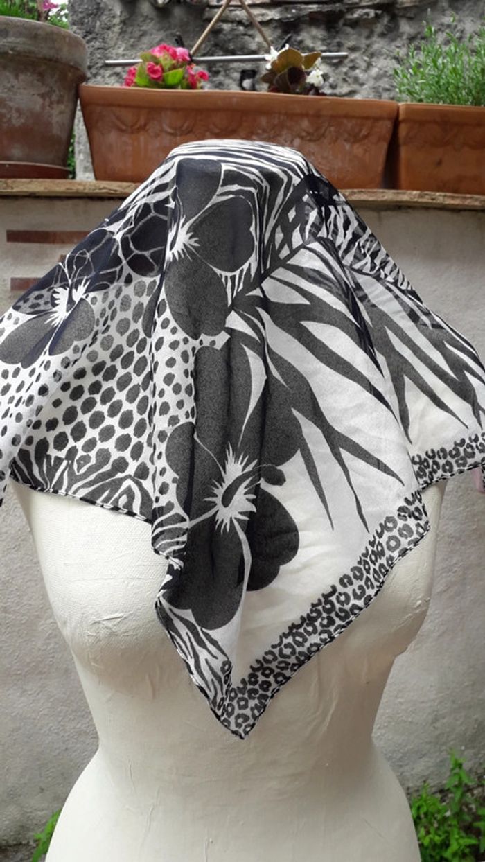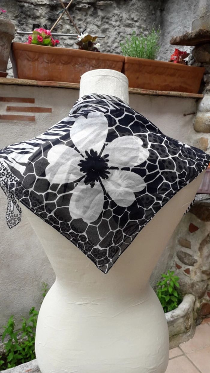Foulard carré motifs fleurs noires et blanches - photo numéro 1