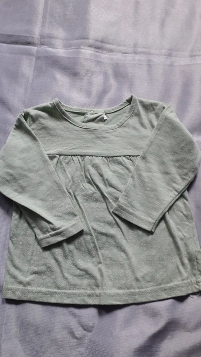 Tunique tee-shirt à manches longues vert pâle  12 mois - photo numéro 3