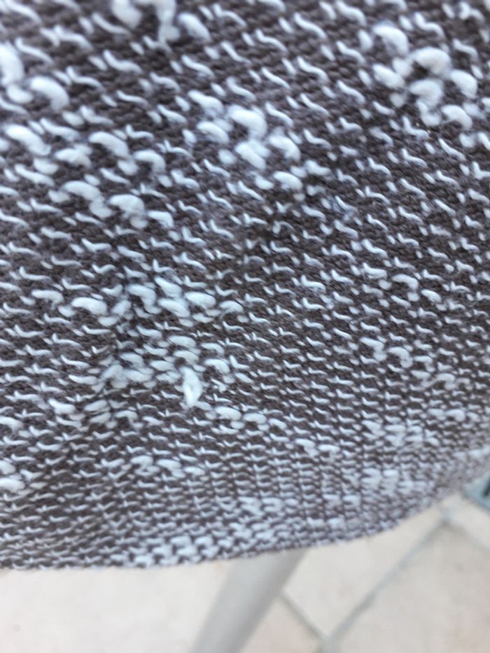Robe pull, col flou chinée taupe et blanc 2, 3 mailles relâchées (dernière photo) #rita2020jupeetrobetailleL