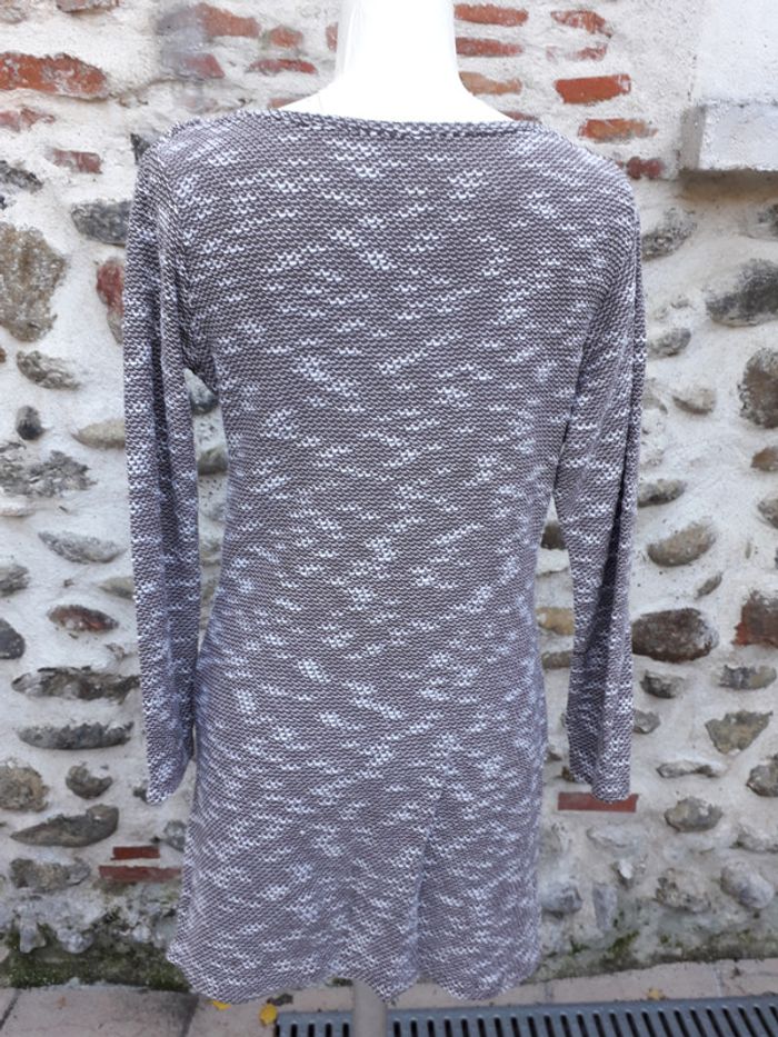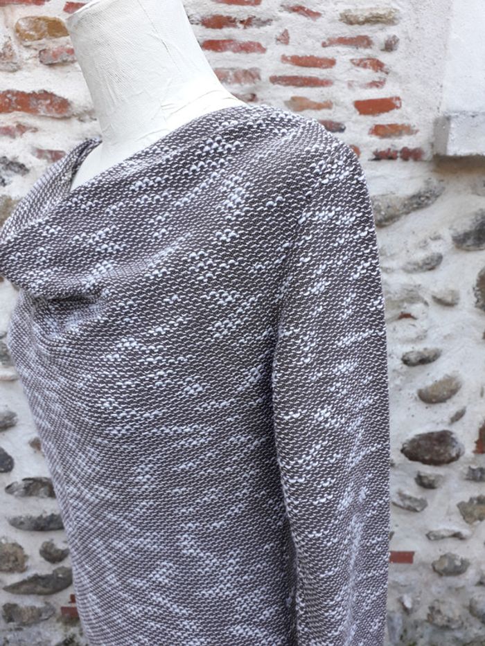 Robe pull, col flou chinée taupe et blanc - photo numéro 3