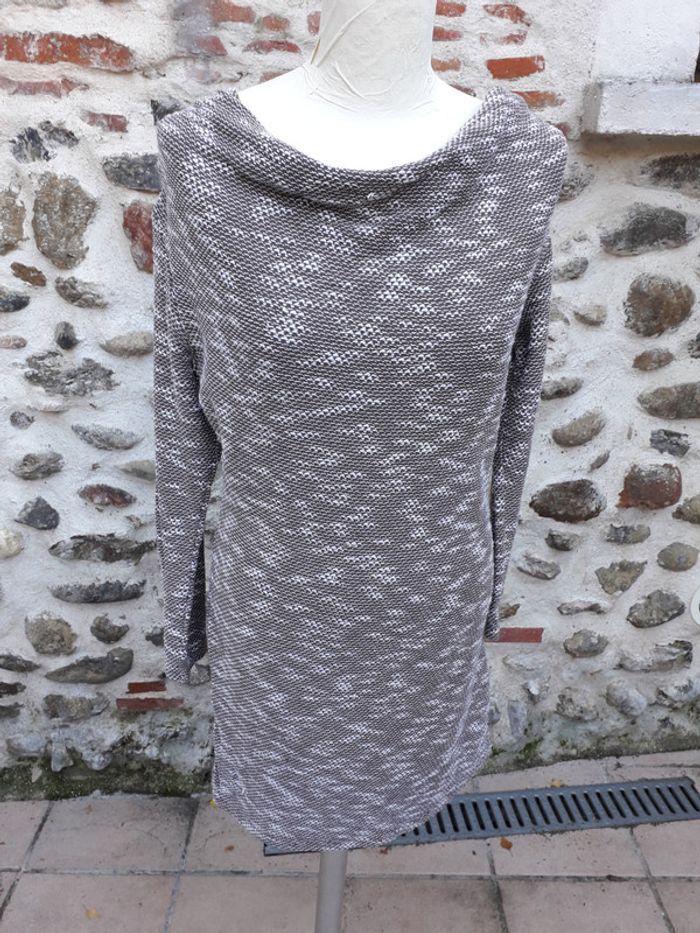 Robe pull, col flou chinée taupe et blanc - photo numéro 1