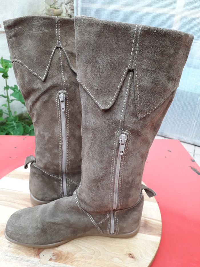Bottes daim marron kaki - photo numéro 1