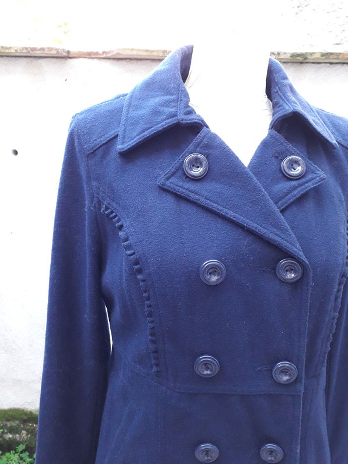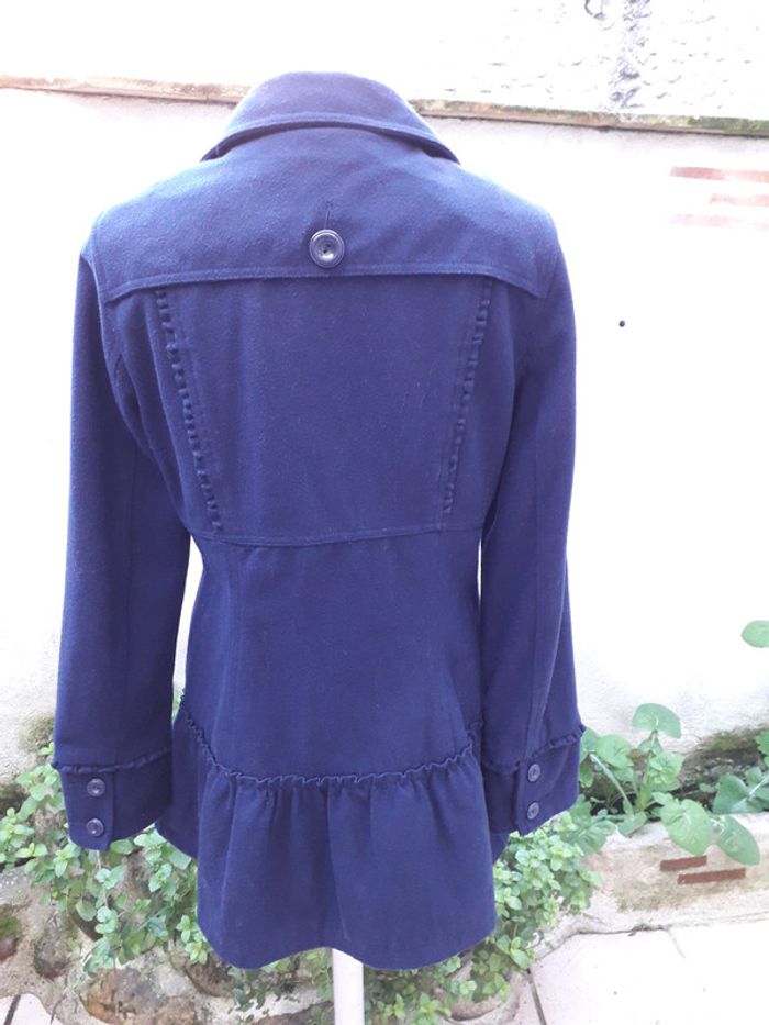 Manteau coupe féminine bleu marine (la photo est trompeuse, il est bien bleu marine) Entièrement doublé en fuchsia Laine et polyester Porté mais très bon état #rita2020manteautailleM