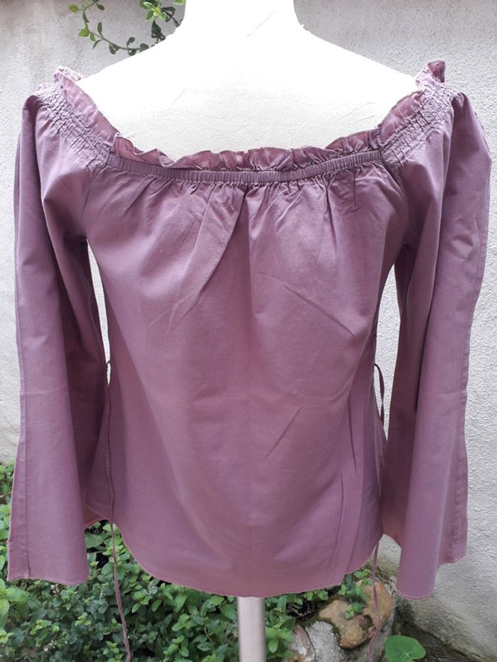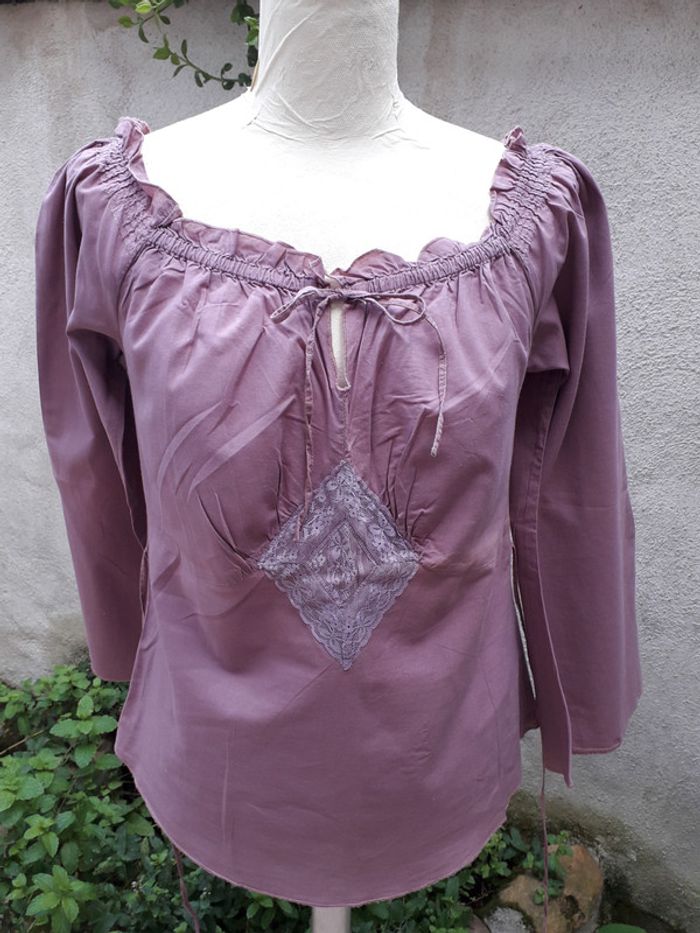 Tunique-blouse, manches évasées Encolure ronde avec lien et smocks Taille 14 ans correspondant au 34/36 100% coton #rita2020hauttailleXS