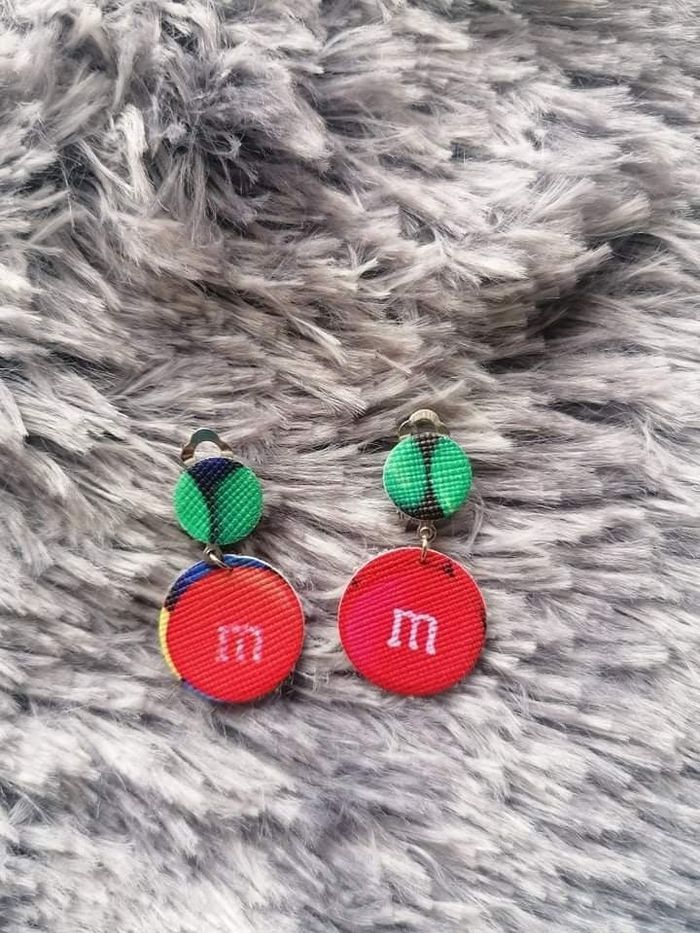 Boucles d'oreilles clip (pas besoin d'avoir les oreilles percées) thème bonbon. Elles font 3,5cm de long et sont très légères