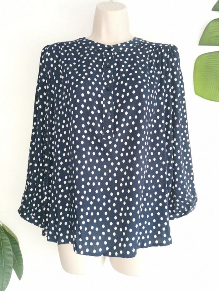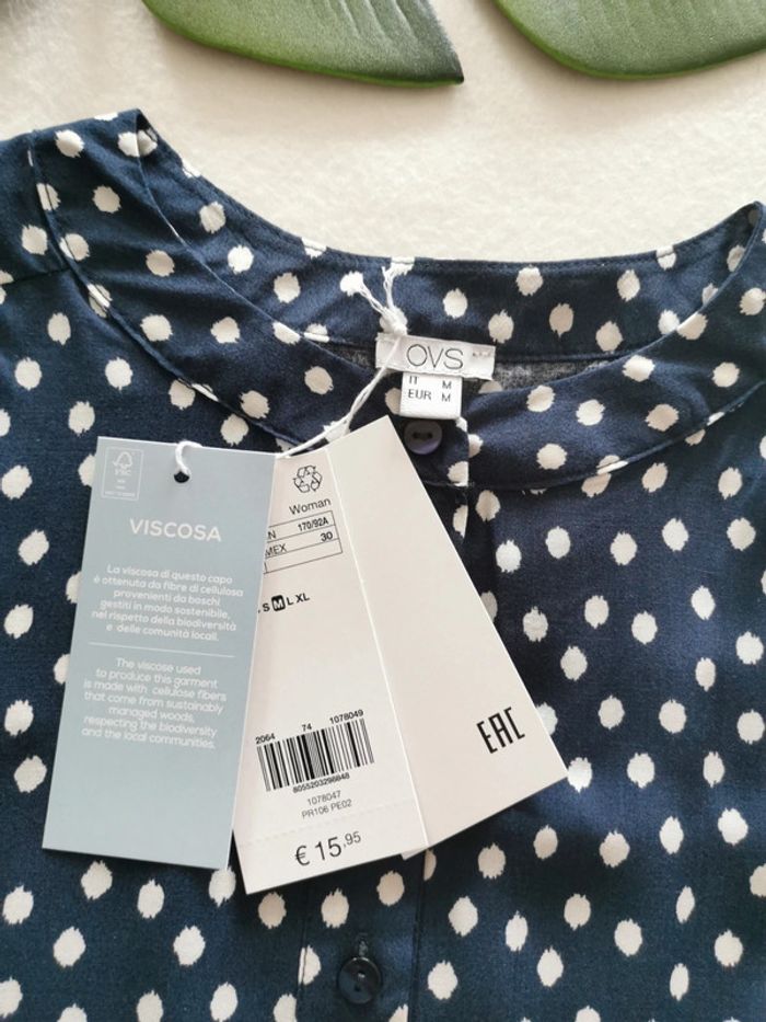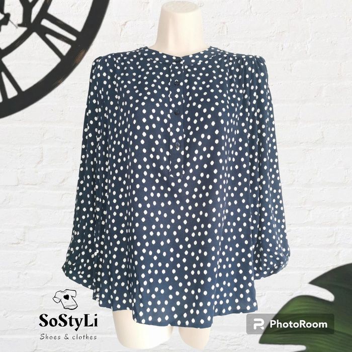 🙎‍♀️ ARTICLE NEUF AVEC ÉTIQUETTE 🙎‍♀️ Blouse à pois ⚪⚪⚪ OVS 🙎‍♀️ Taille M • Matiere: 100% viscose • Tissu doux et fluide • Manches longues • Col rond ouverture par 4 boutons 🔘🔘🔘🔘 • Couleur: bleu marine 🟦 à pois blancs ⚪⚪⚪ • 📏 Longueur: 62 cm • 📏 Mesure épaules: 36 cm • 📏 Mesure sous aisselles: 57 cm 💰 Prix boutique: 15.95€ Parfait état 👌, avec étiquette 🏷️, jamais portée #SoStyLifemmeTailleM 💓