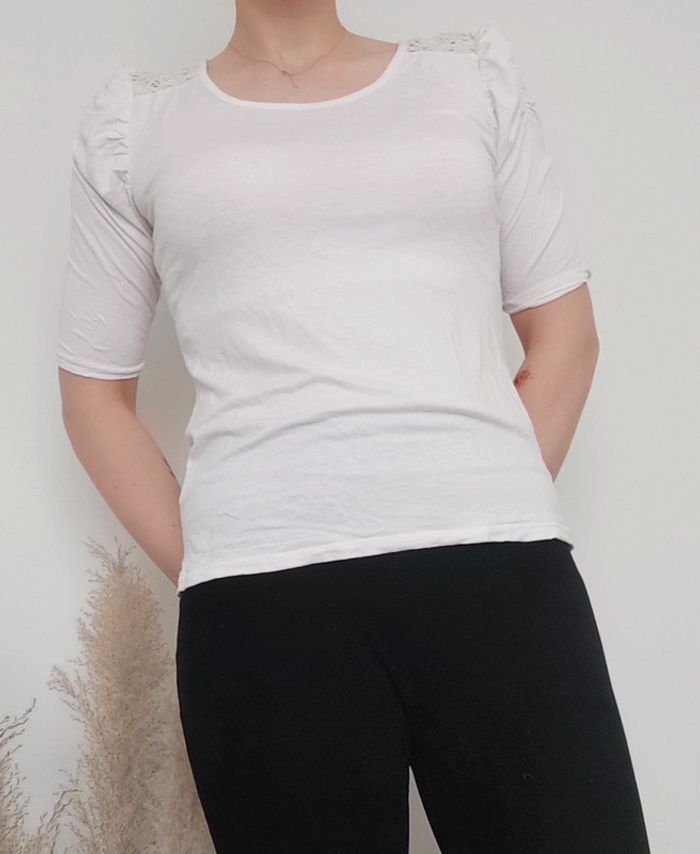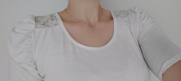 #littlelys_femme T-shirt manches 3/4 Bon état car il est un peu décoloré blanc crème rose clair Taille 4