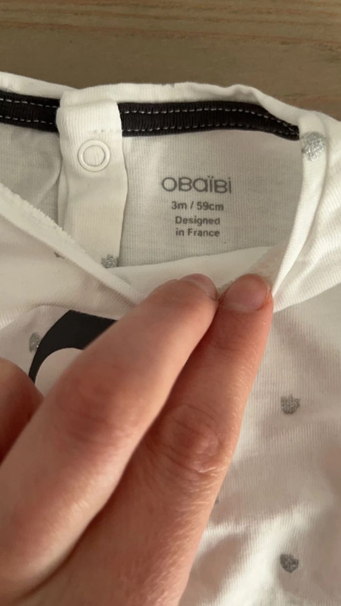 T-shirt manche longue blanc obaibi 3 mois - photo numéro 4