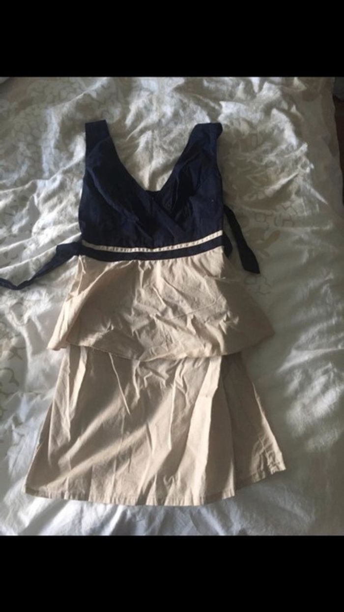 Robe Jennifer beige et bleu marine - photo numéro 1