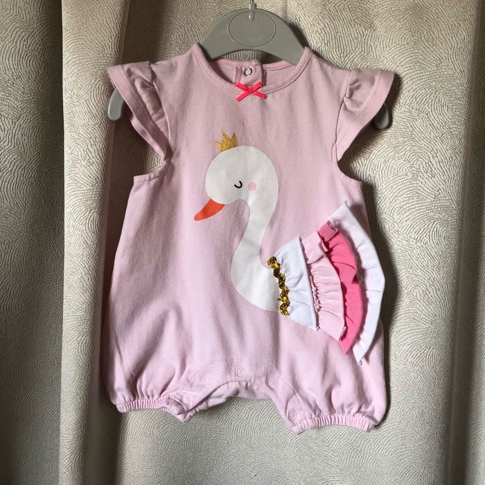 Grenouillère combi short Rose imprimé cane reine avec couronne doré Taille 3 mois Orchestra