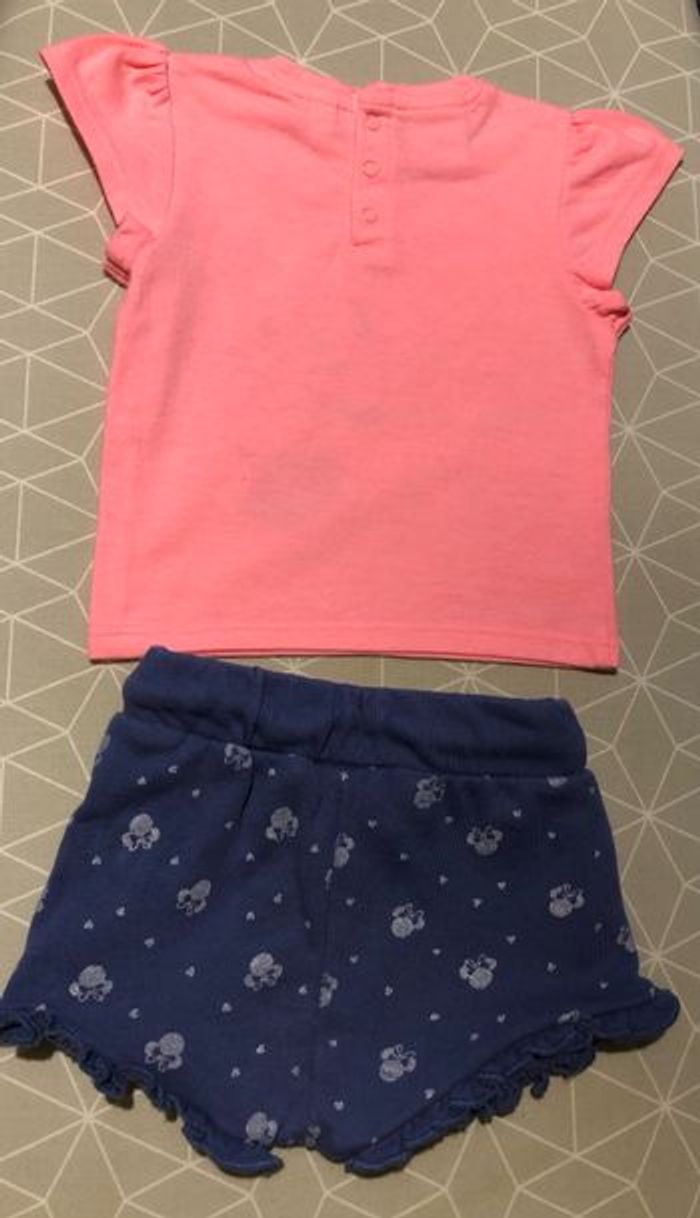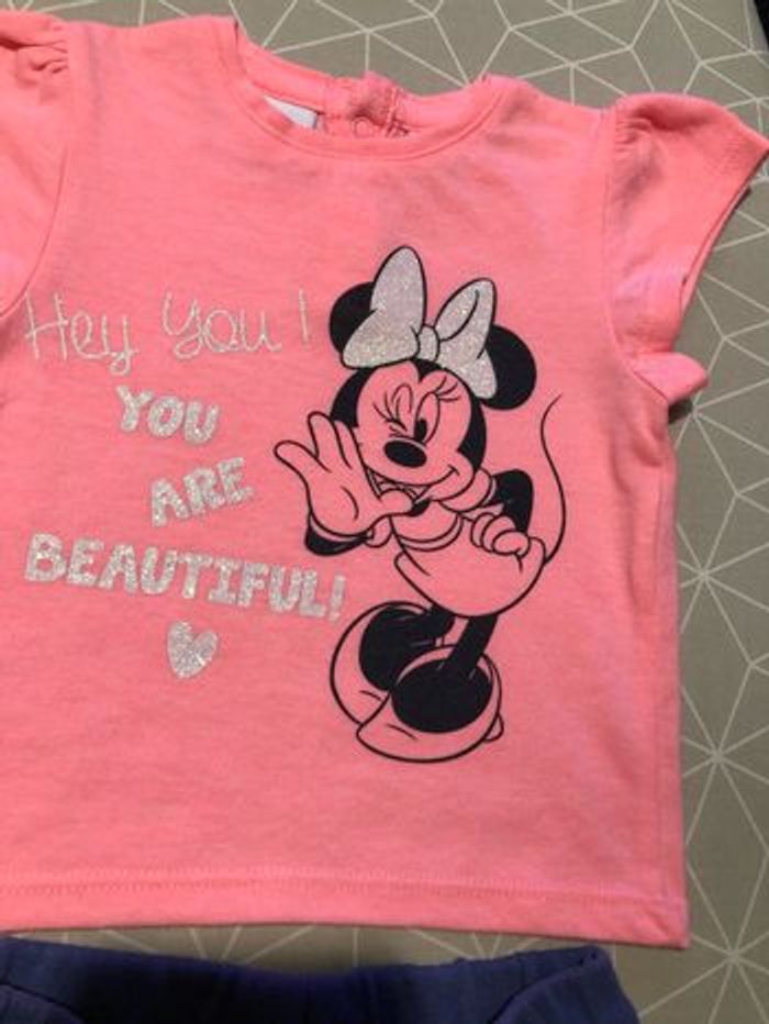 Ensemble t-shirt rose corail et short bleu Minnie 3 mois Disney - photo numéro 2