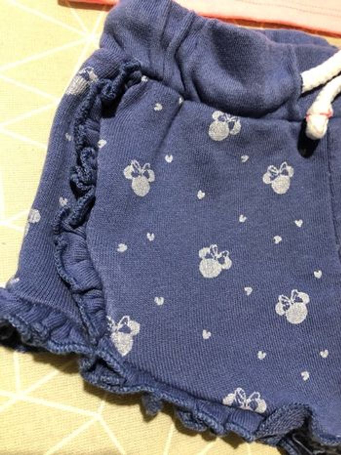 Ensemble t-shirt rose corail et short bleu Minnie 3 mois Disney - photo numéro 3