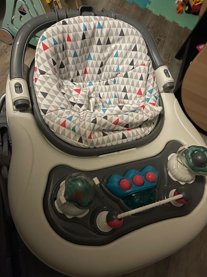 Trotteur 2 en 1 qui se transforme en chariot de marche que bébé peut pousser en grandissant Quasiment jamais servi (manque d’espace)