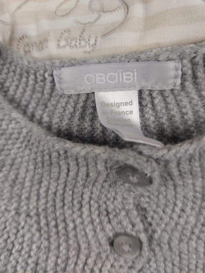 Lot de 2articles jeans et petit gilet taille 3/6mois marque obaibi couleur gris et bleu - photo numéro 5