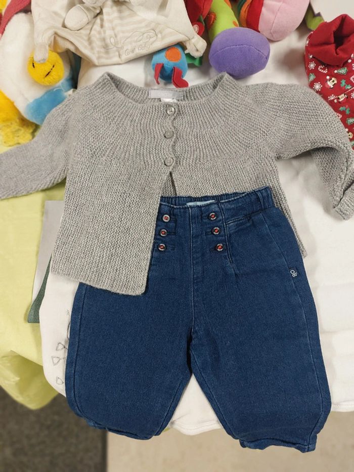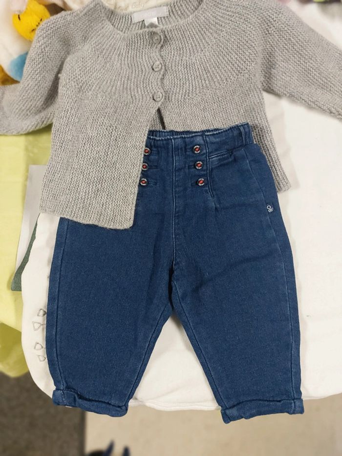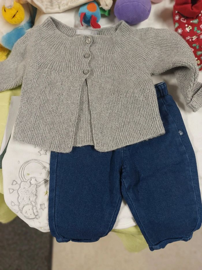 Lot de 2 articles jeans bleu et gilet gris marque obaibi très bon état #nanettenolfilletaille3/6mois