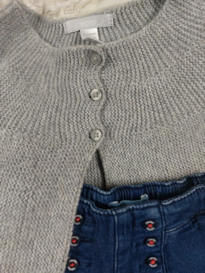 Lot de 2articles jeans et petit gilet taille 3/6mois marque obaibi couleur gris et bleu - photo numéro 4