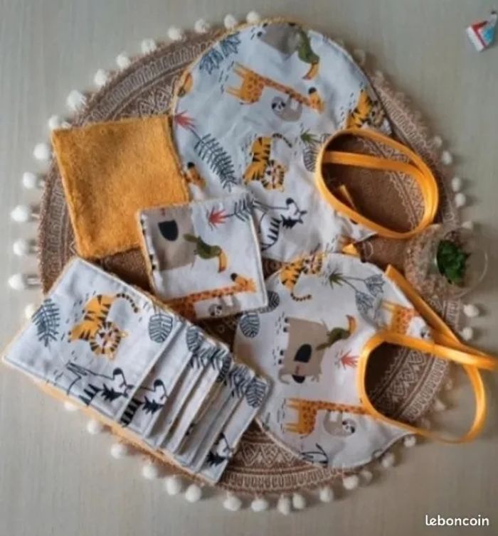 Lot de deux bavoirs et dix lingettes lavables en coton et éponge de bambou Possible de créer a la demande plusieurs tissu disponible