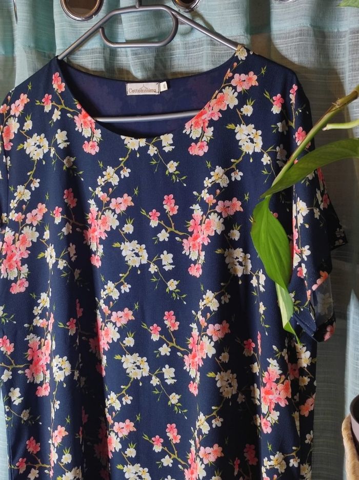 Tres belle robe a motifs fleurie de chez cottonissimo en taille xxl. Légère, fluide et ample.