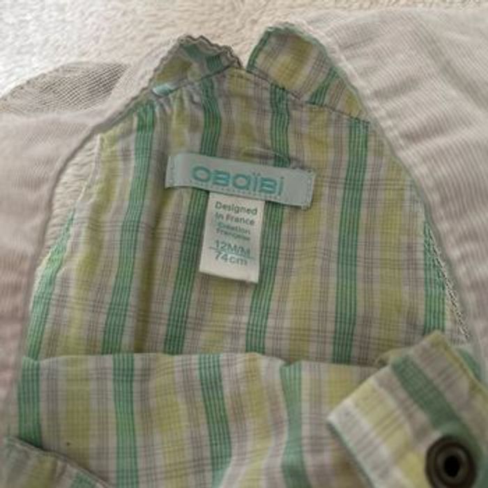 Salopette obaibi. Possibilité de la mettre en version short ou pantalon. Ouverture entrejambe avec pressions. Très bon état. Taille 12 mois -74cm