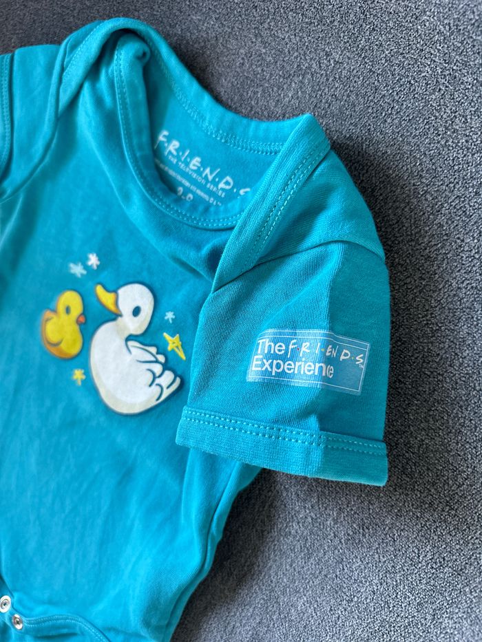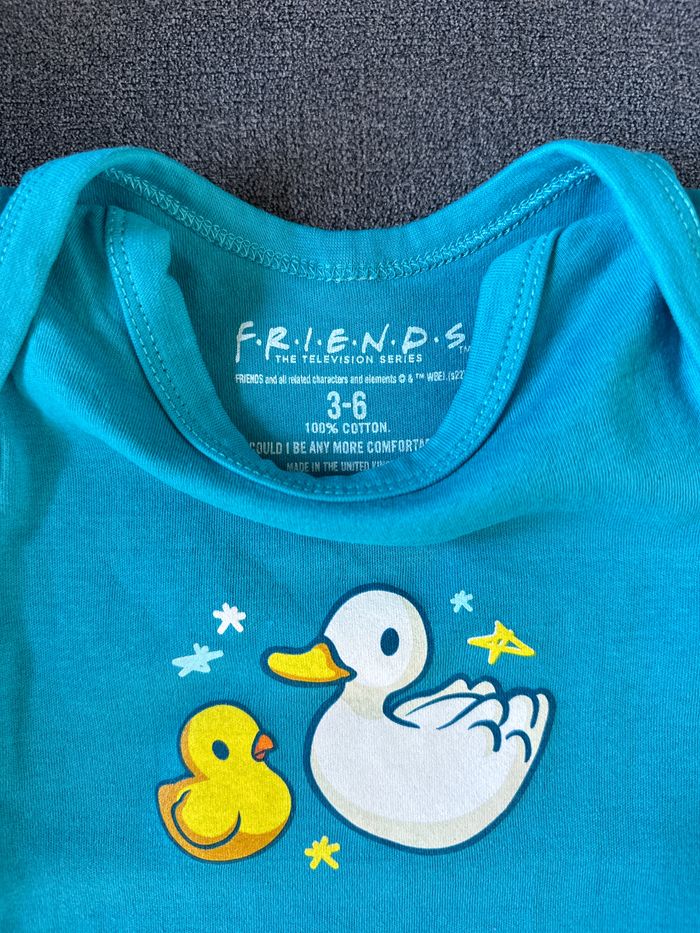Body manches courtes Très bon état (porté qu'une fois) Taille 3-6 mois (plutôt 6 mois !) Marque de la série FRIENDS