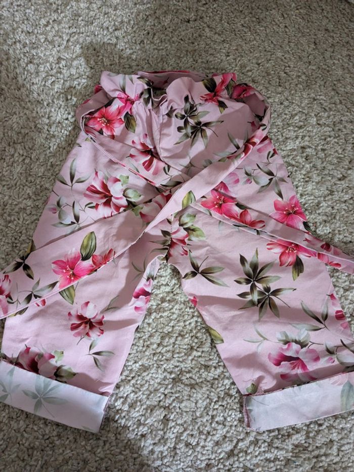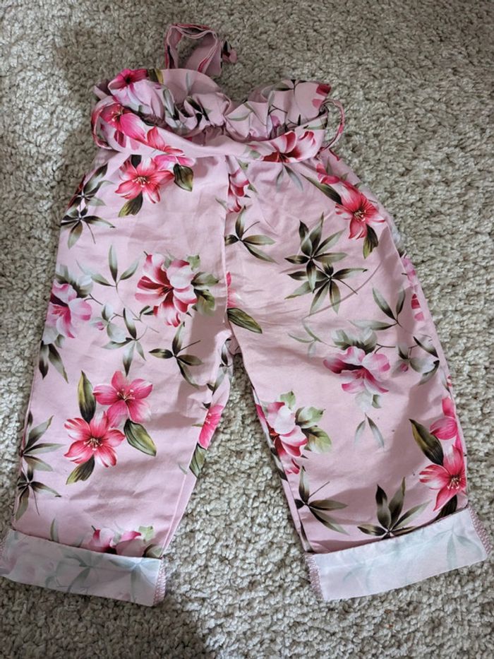 Excellent état - taille haute élastiquée avec une ceinture en tissu - aucune taille indiquée mais je dirais 12 mois - jambes larges, très joli avec un simple body ou un tee-shirt uni rentré dans le pantalon