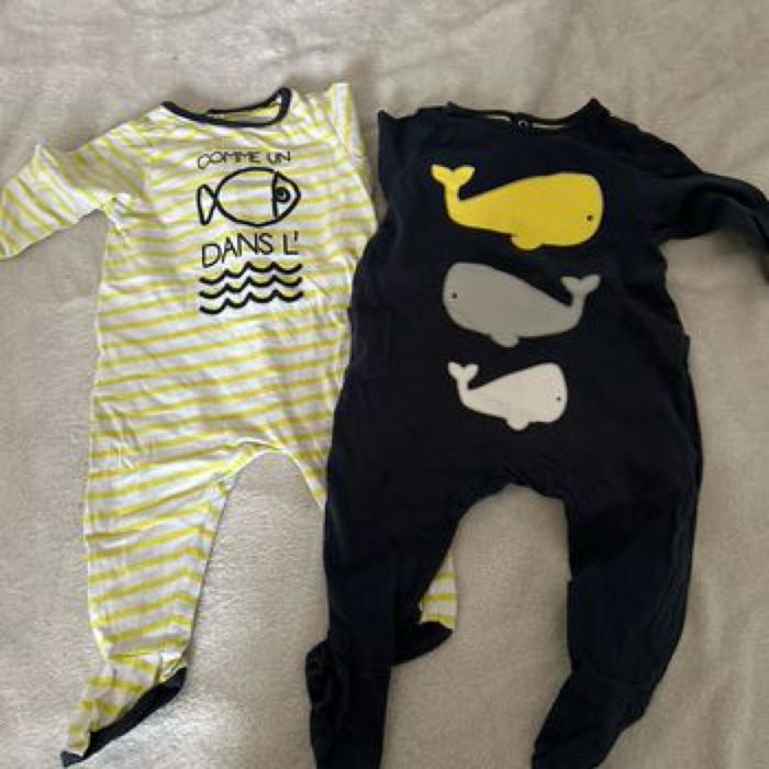 2 pyjamas obaibi légers. Très bon état. Je donne un 3 eme qui est légèrement tachés au niveau du col. Taille 9 mois.