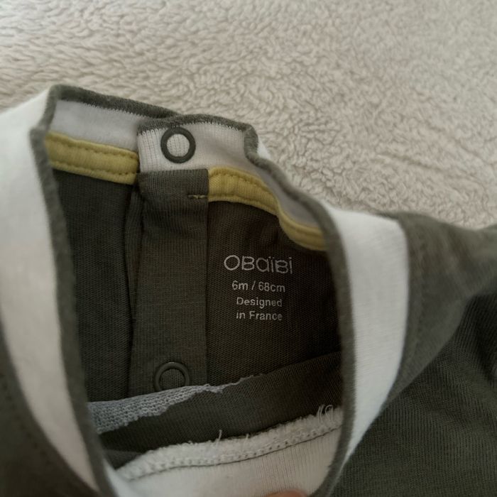 T-shirt obaibi manches longues. Ouverture complète dans le dos avec des pressions. Comme neuf. Taille 6 mois.