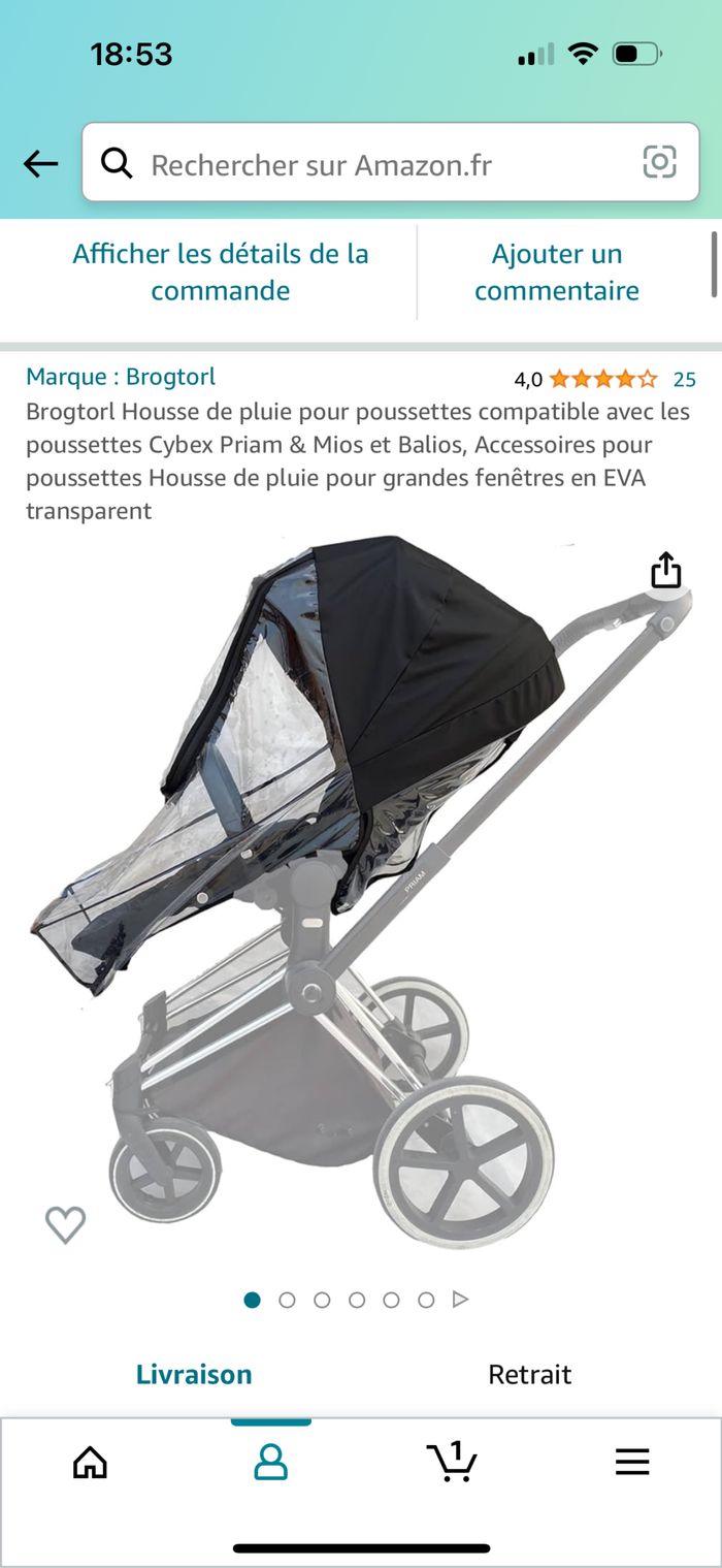 Housse de pluie acheter sur Amazon 30€ neuve lire la description. Je la vend car dans ma nouvelle poussette ils en ont fournit une!