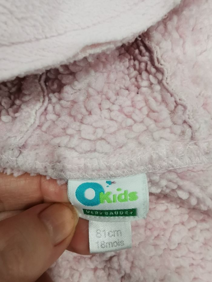 Veste très épaisse polaire 18 mois Poches, capuche, 2 poches, se ferme par boutons pressions Rose pal Il est en bon état mais ⚠️ il a quelques tâches