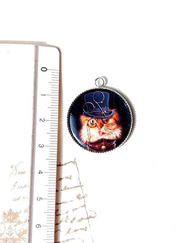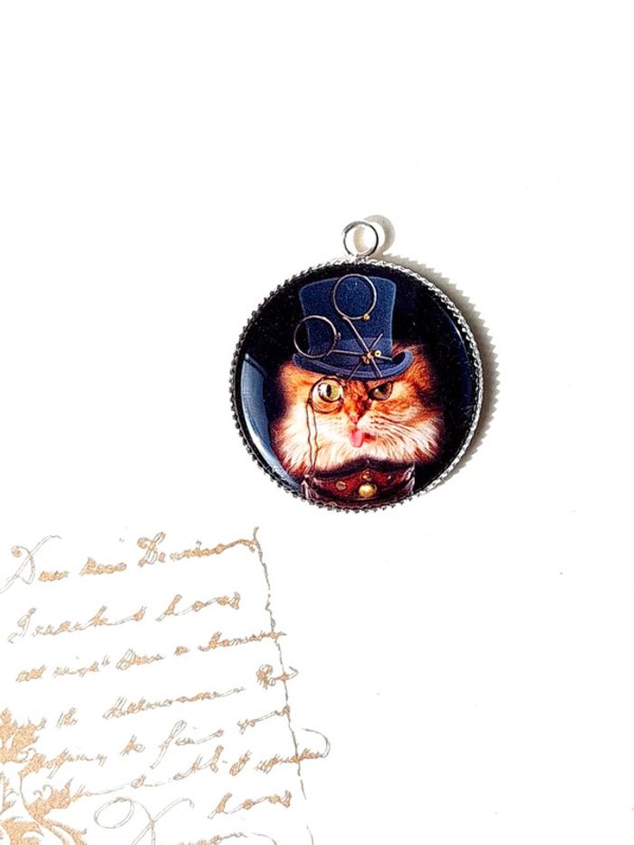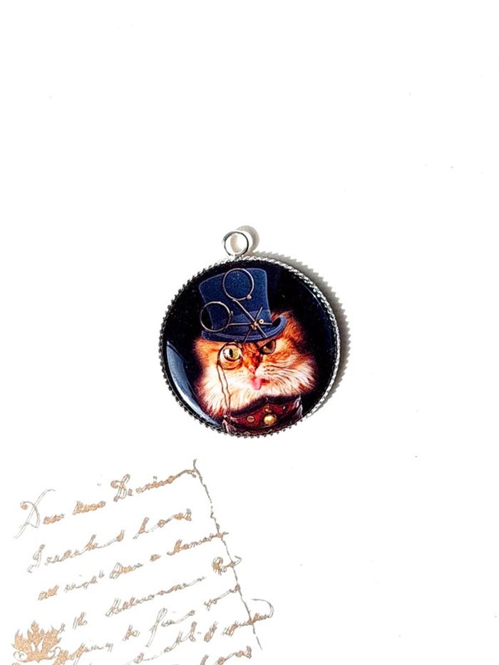 Magnifique pendentif style steampunk victorien chat - photo numéro 5