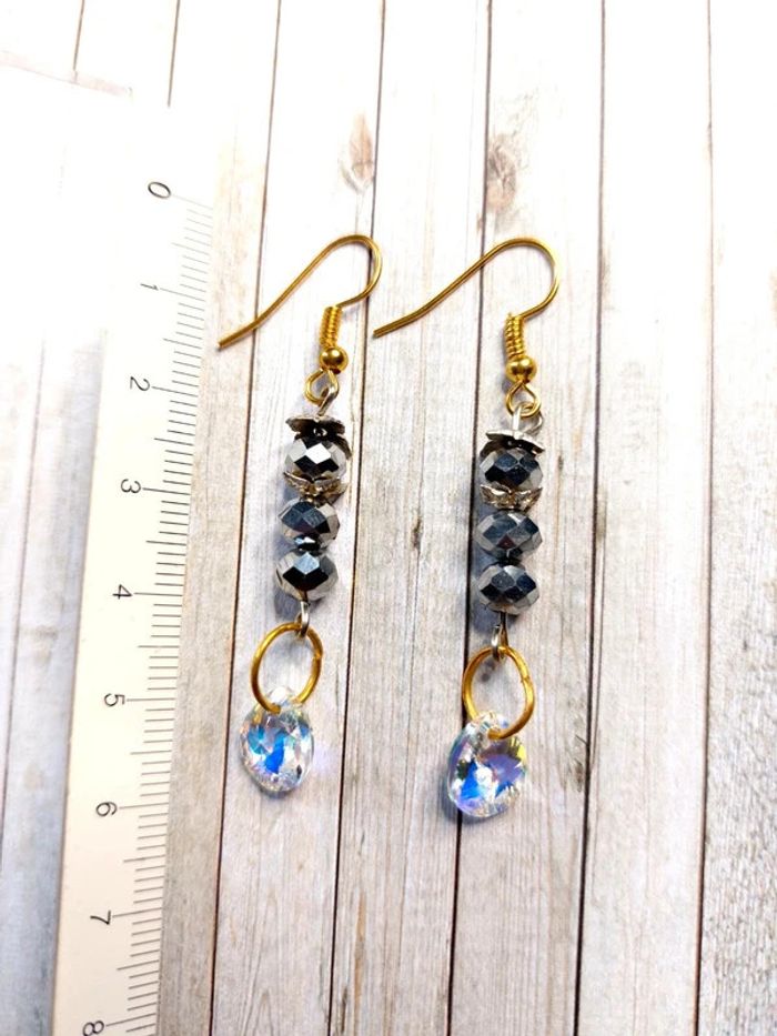 Magnifique paire de boucles d'oreilles pendantes en perles avec strass - photo numéro 3