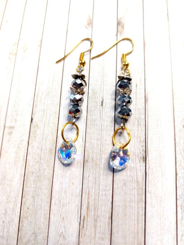 Magnifique paire de boucles d'oreilles pendantes en perles avec strass - photo numéro 2