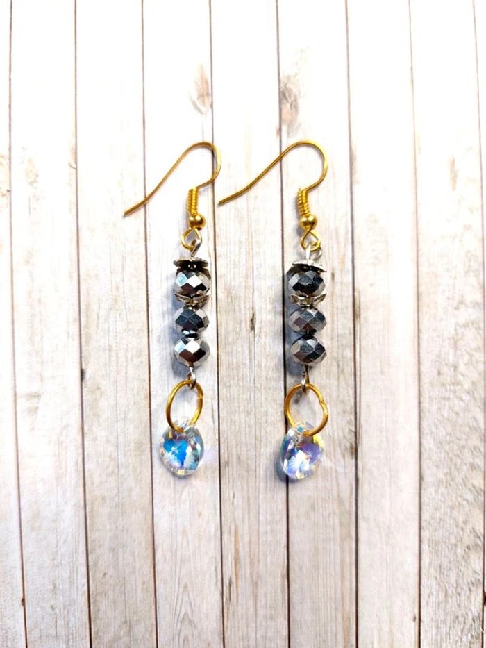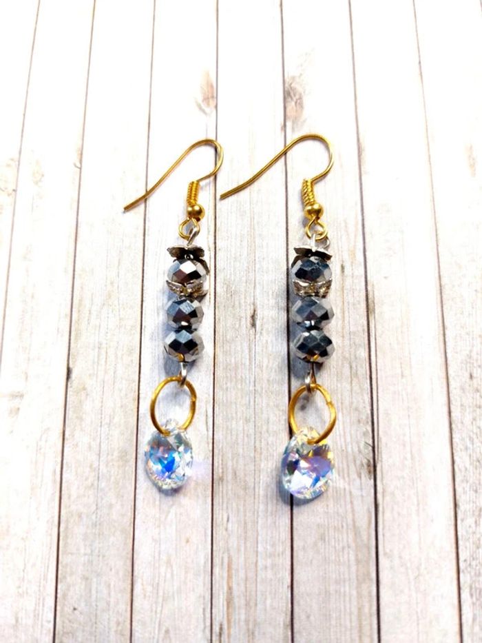 Magnifique paire de boucles d'oreilles pendantes en perles avec strass - photo numéro 1