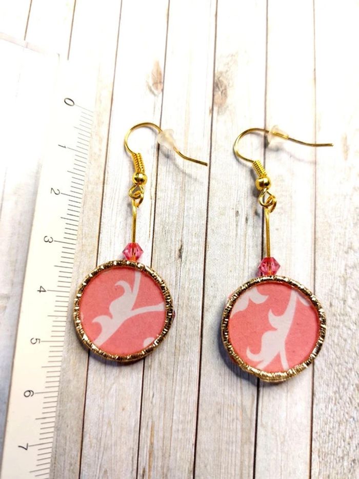 Magnifique paire de boucles d'oreilles pendantes, rose et dorées - photo numéro 1