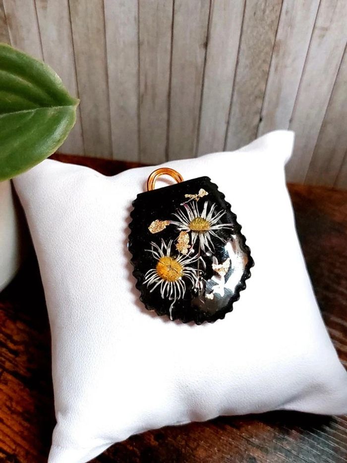 Magnifique pendentif noir en résine avec fleurs séchées - photo numéro 1