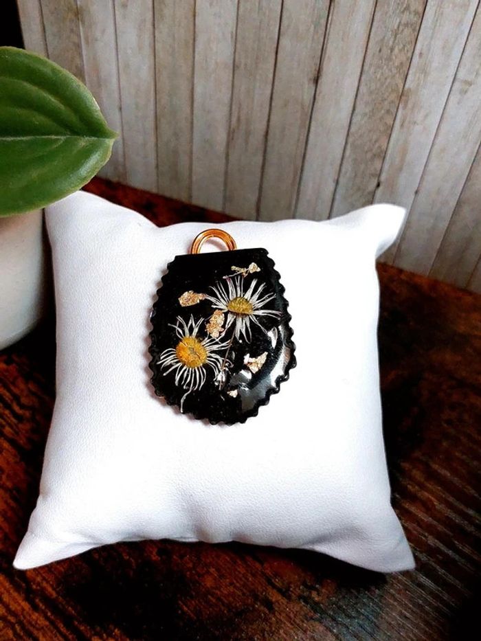 Magnifique pendentif noir en résine avec fleurs séchées - photo numéro 6