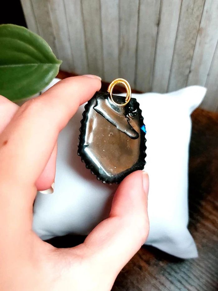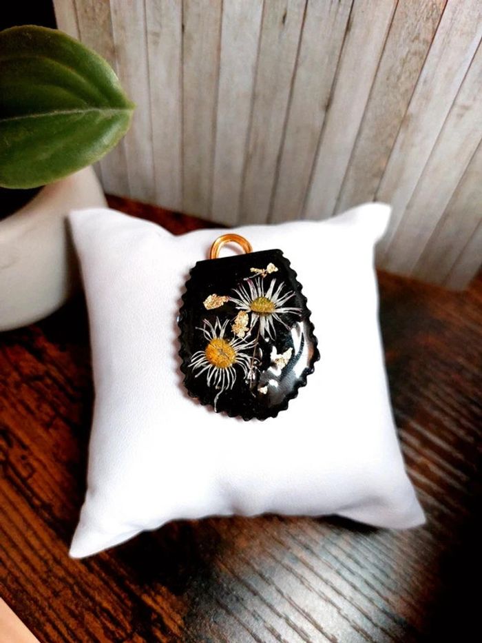 Magnifique pendentif noir en résine avec fleurs séchées - photo numéro 4